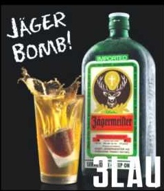 La Jägermeister est une liqueur à base de plantes médicinales à 35°. Les 56 herbes qui rentrent dans sa composition sont tenues cependant secrètes. Cet alcool se trouve dans le shooter (le verre du haut), et se mélange dans le verre inférieur avec une boisson énergisante.